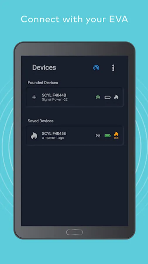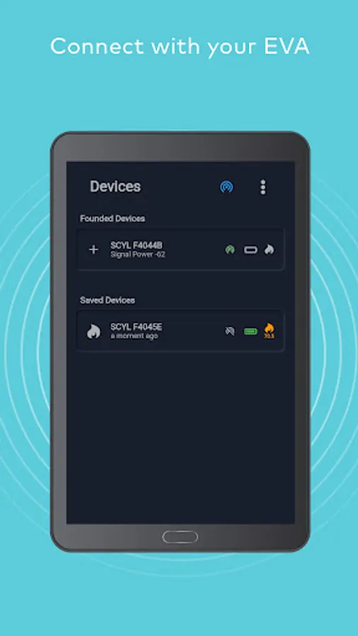 To pair your smartphone with EvaSmart, press and hold the button on device. Blinking lights means that your device is in pairing mode. Then add the device on app main screen. (*You can add multiple EvaSmart cylinders to the app.)
