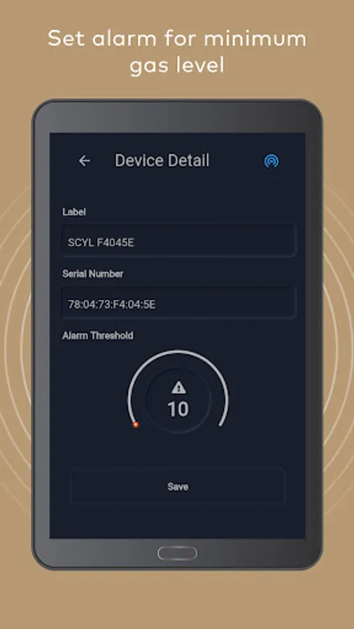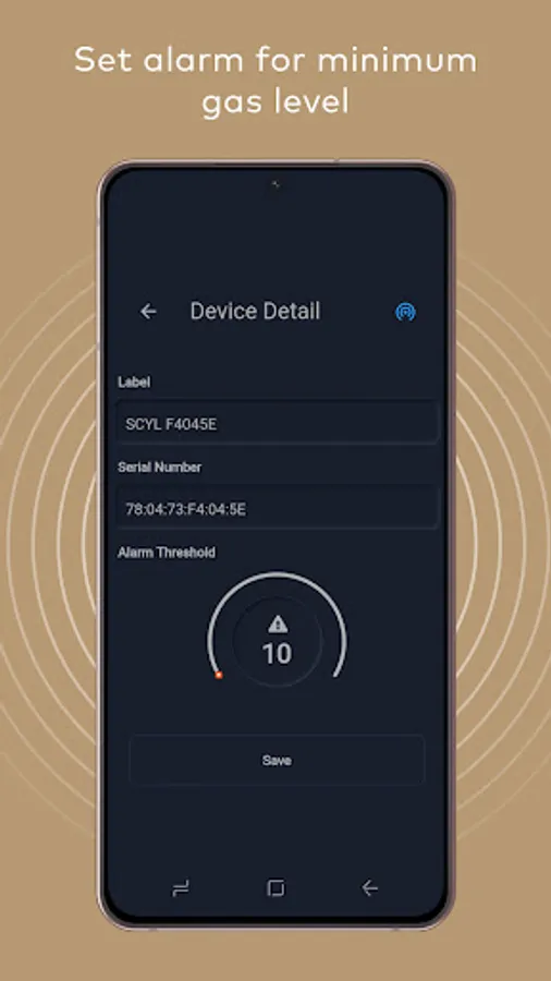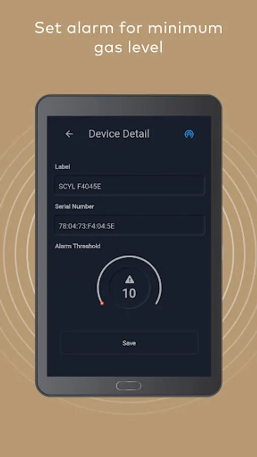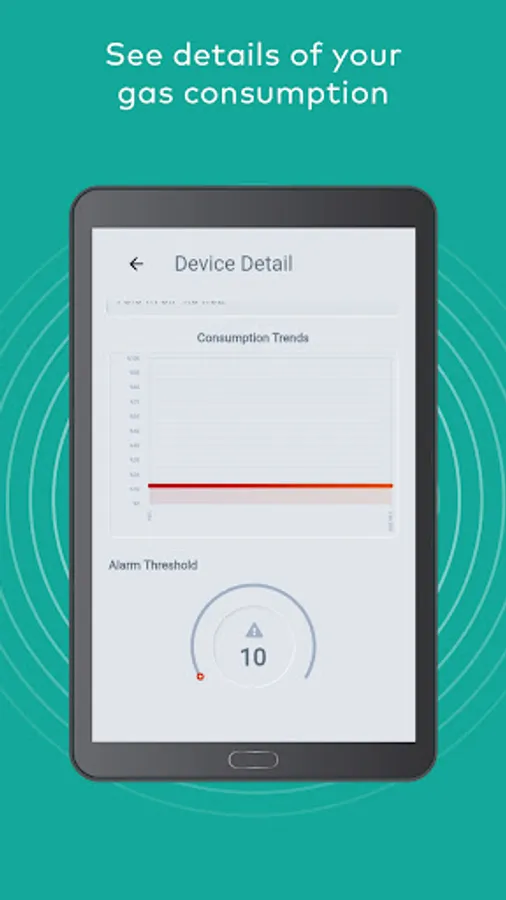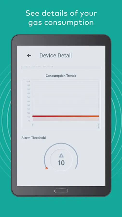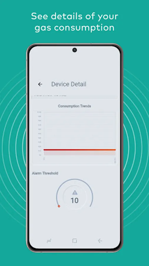 Now, you can check your current gas level in app. EvaSmart also periodically measures the gas level and sends all stored results to the app. With this stored data, the app generates a graph showing the consumption history and estimate the remaining time to run out of gas. You can also set an alarm threshold to be alerted when the gas level drops below the critical level.