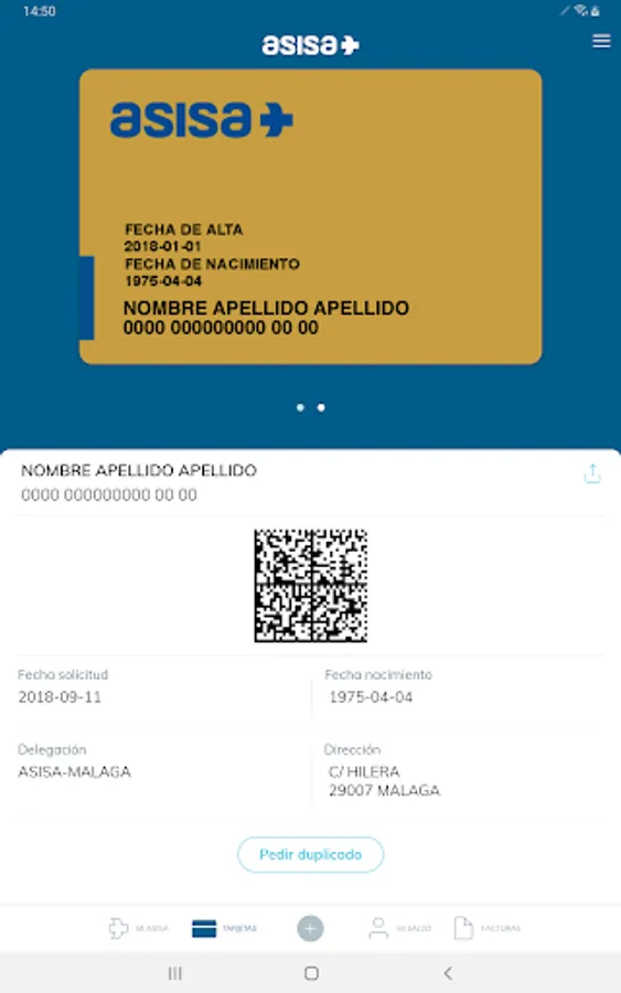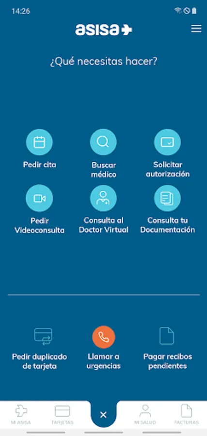 (*) Access to most of these services requires registration. If you have not already done so, you can do so directly in the application itself or through www.asisa.es/registro. The username and password you choose will be valid to access through both channels.