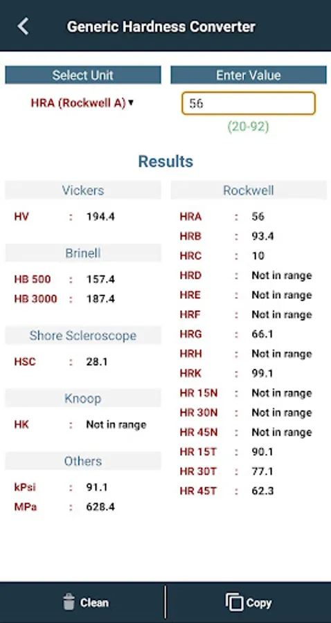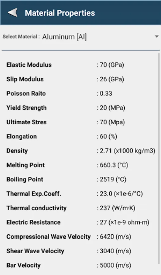 • A total of 15 mechanical property values for 73 materials can be easily accessed at any time.