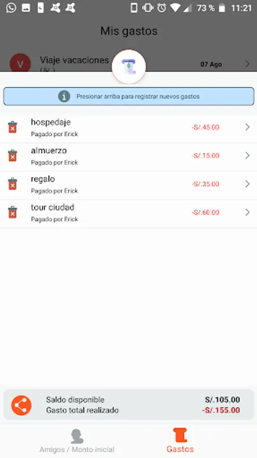 With this app you can register expenses such as travel, shopping in supermarkets, departures, etc. You can manage your expenses and share it with your friends.