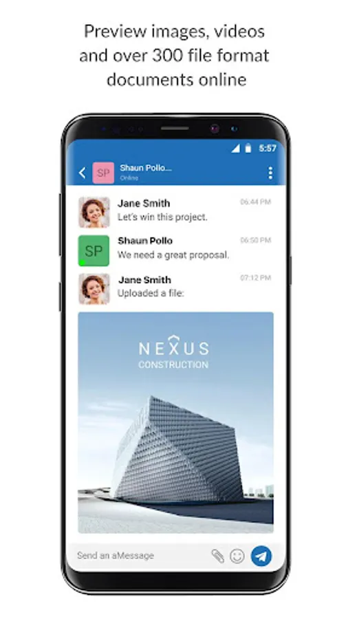 aMessage ensures secure business messaging and file sharing, with groups and individuals. Over 300 file types can be viewed online.