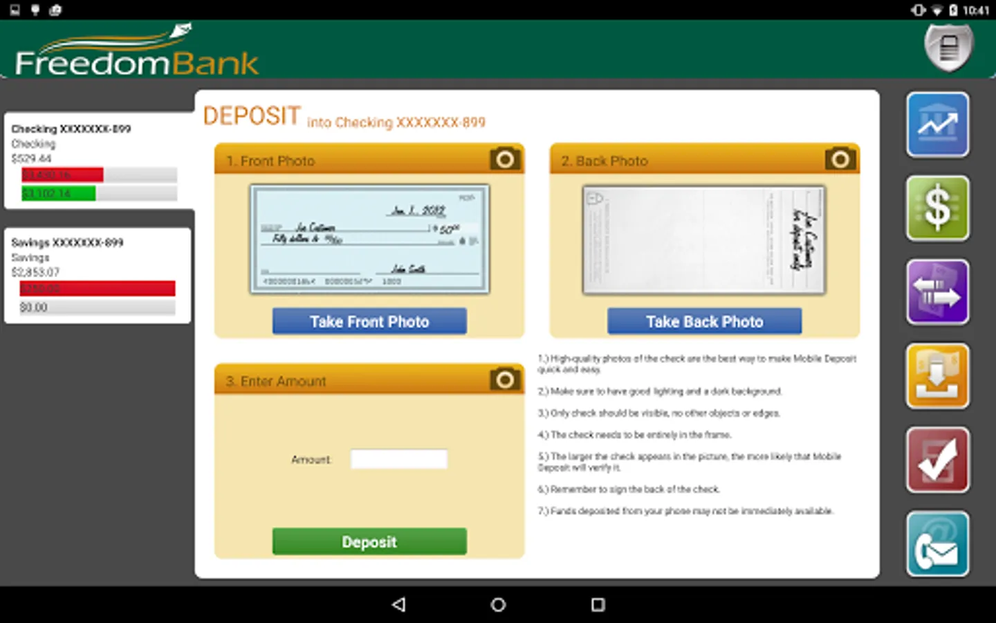 Manage your accounts with FreedomBank located in Northeast Iowa. View account history, transfer funds, make loan payments, deposit checks*, and pay bills. Must be signed up for FreedomBank Online Banking to install the APP.