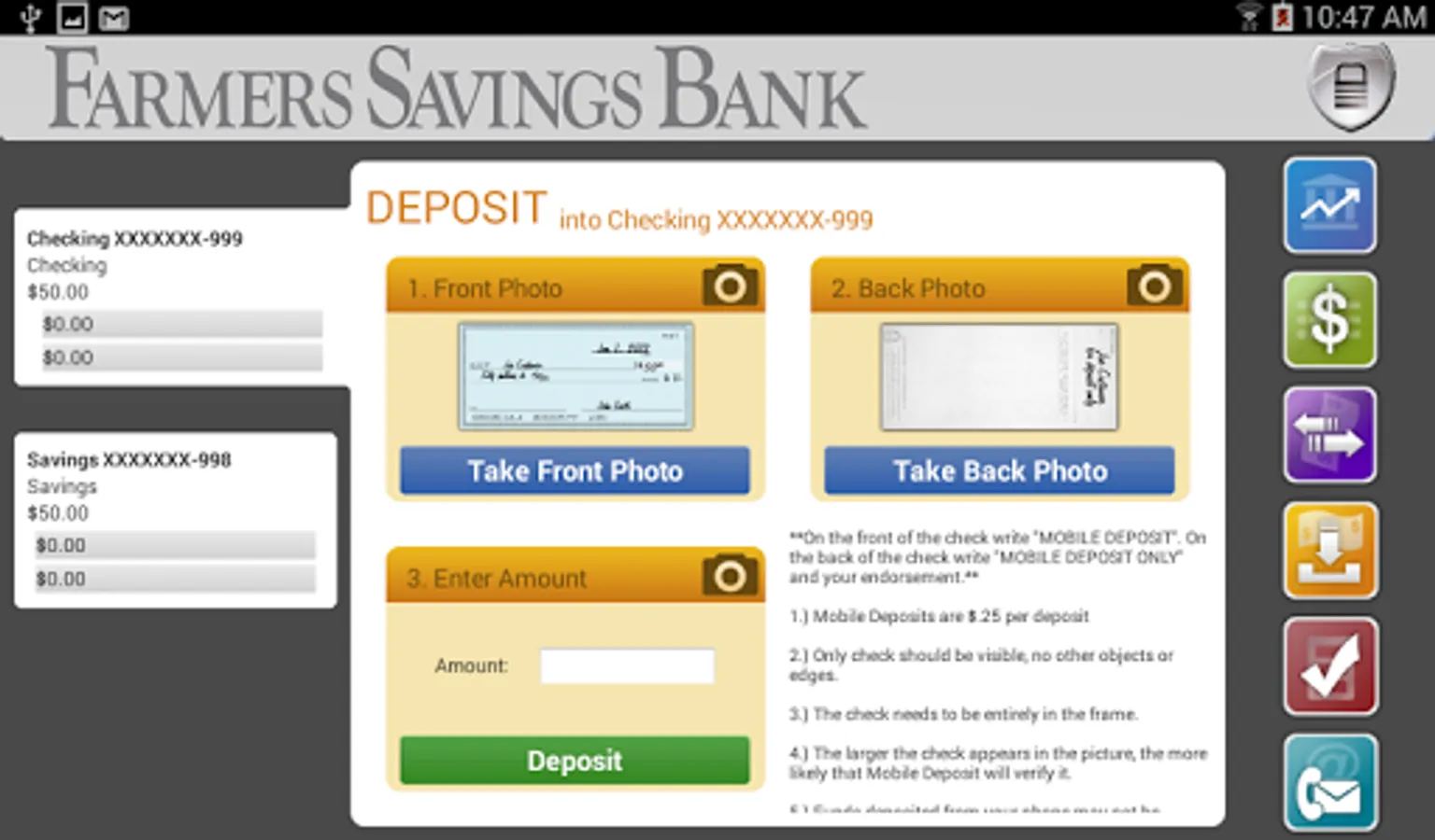 Farmers Savings Bank (FSB) Mobile App from Fostoria/Milford, IA allows you to access your account anywhere at any time. Manage your accounts with: Checking your Balances, Transferring Funds, Loan Payments, Bill Pay, Mobile Deposits, and much more! Your FSB App Access is available free of charge to our online banking users; online banking is required. Your mobile carrier’s text messaging and web access charges may apply.