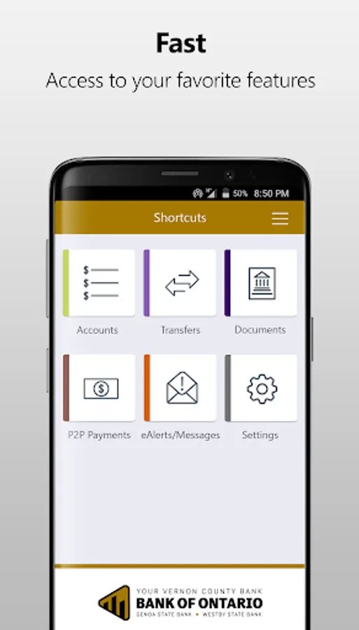 Bank of Ontario allows you to view your bank accounts, schedule transfers between them, and even deposit checks from anywhere!