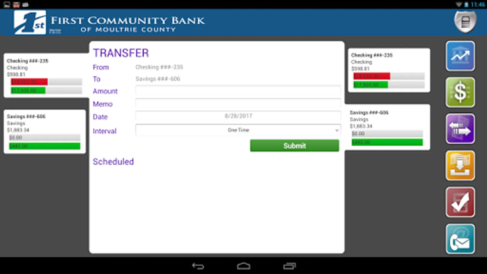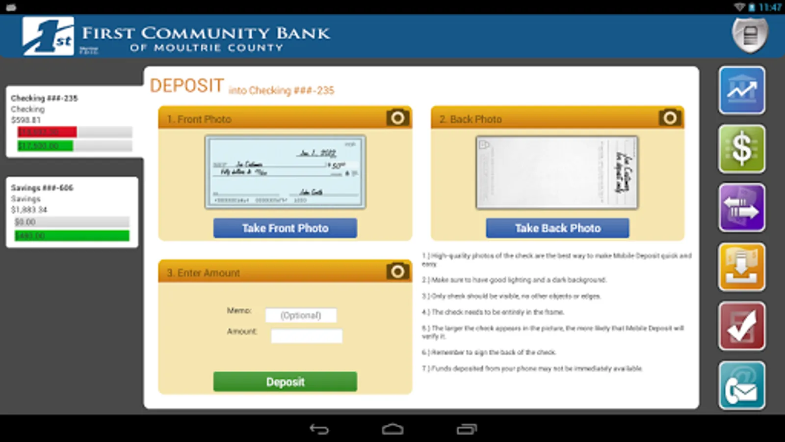firstmoco allows you to view your bank accounts, schedule transfers between them, and even deposit checks from anywhere!
