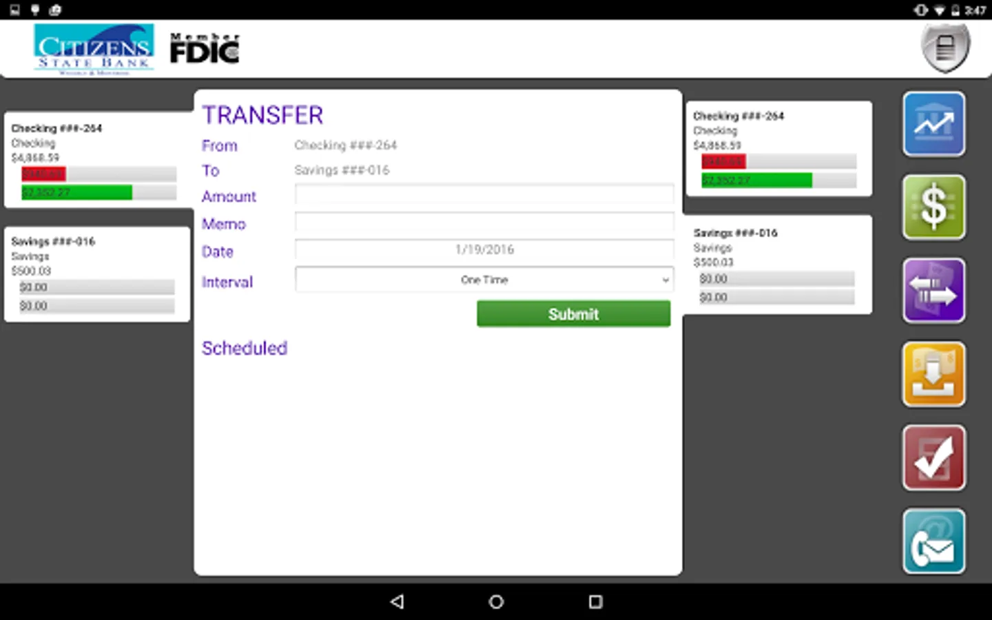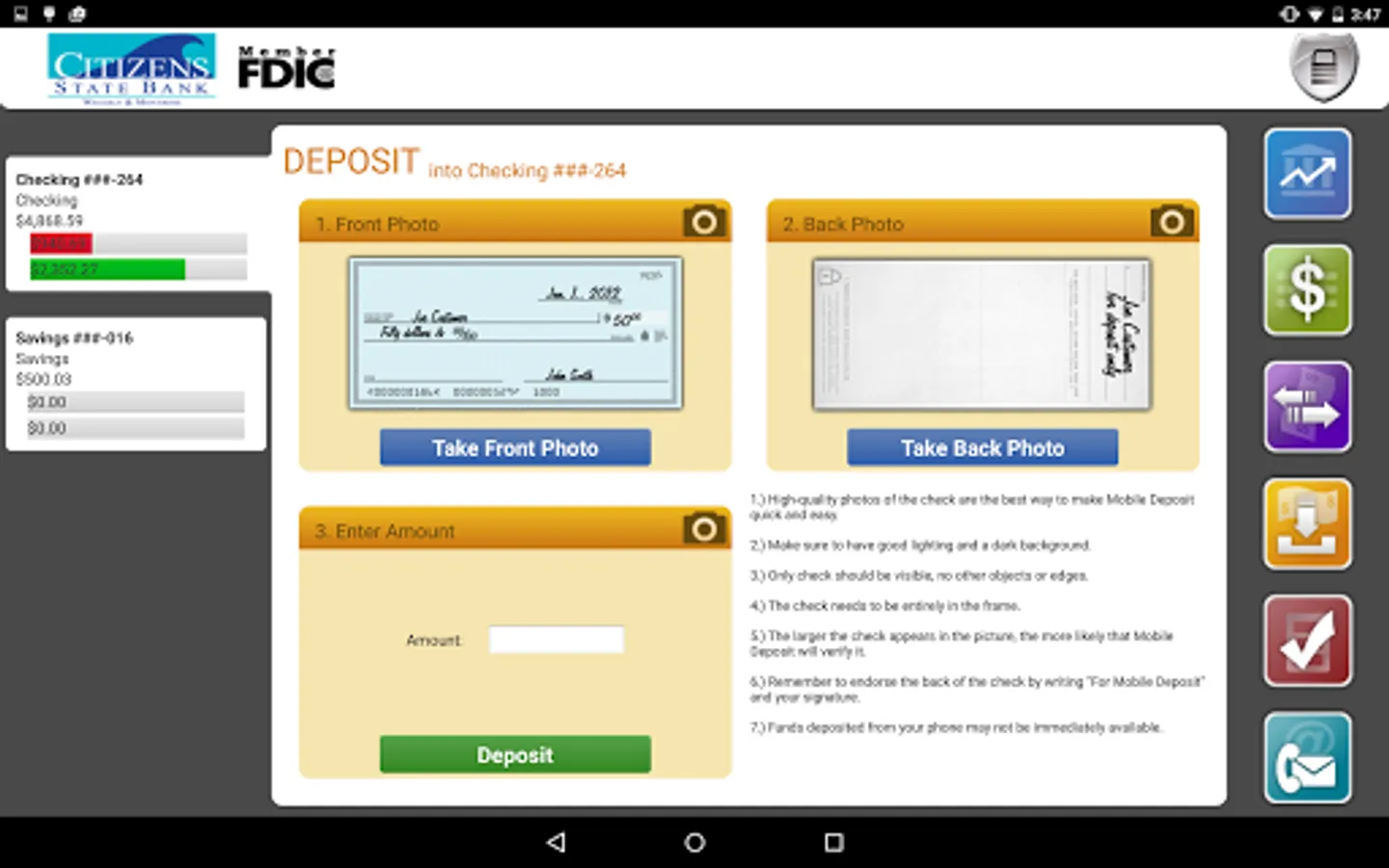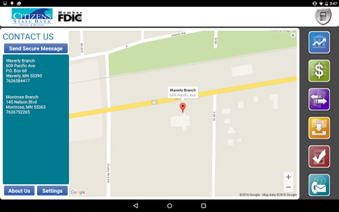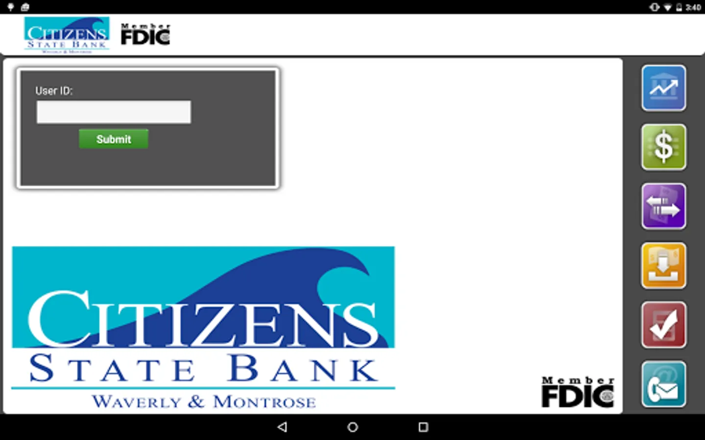 The Citizens State Bank of Waverly (& Montrose) Tablet App provides access to the same accounts that are viewable in online banking. View account balances, view recent and pending transactions, transfer funds between accounts, deposit checks, and pay bills!
