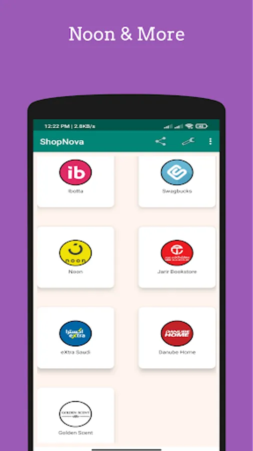 ShopNova provide top shopping sites like IKTISSAB, CashBasha, ShopBack, DubLi, GoPaisa, BeFrugal, Honey, TopCashBack, Ibotta, Swagbucks, Noon, Jarir Bookstore, eXtra Saudi, Danube Home and Golden Scent.  Introducing Iktissab Shopping - Your Ultimate Retail Therapy Companion! Step into the world of online shopping with Iktissab, the ultimate platform that brings together a vast selection of products and brands for your convenience. From fashion and electronics to home decor and beauty essentials, Iktissab Shopping offers a diverse range of options to satisfy all your retail cravings. Discover the latest trends, explore exclusive deals, and indulge in a seamless shopping experience right at your fingertips. With our user-friendly interface and intuitive navigation, finding the perfect items has never been easier. Benefit from secure transactions and reliable customer support as you shop with confidence. Discover the ultimate shopping experience with ShopNova, the native Android app that brings together 15 leading shopping sites, including the popular IKTISSAB, all in one place. Say goodbye to switching between multiple apps and embrace the convenience of finding everything you need in a single destination. From fashion and electronics to home decor and beauty products, ShopNova offers a vast selection of products from renowned brands, ensuring you'll never miss out on the latest trends and deals. With a user-friendly interface and seamless navigation, browsing and comparing items has never been easier. Enjoy exclusive discounts, personalized recommendations, and real-time notifications for exciting promotions. ShopNova prioritizes your security and privacy, guaranteeing secure transactions and protecting your data.