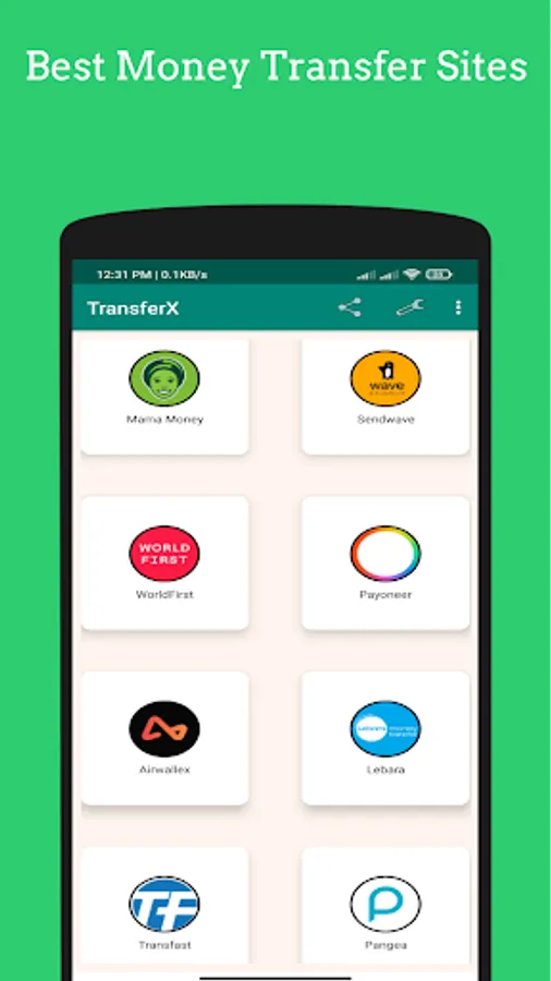 TransferX provide top money transfer service sites like  Mama Money, Sendwave, WorldFirst, Payoneer, Airwallex, Lebara, Transfast, Pangea, OrbitRemit, Paysend, TransferWise, WorldRemit, Xoom, Remitly and Azimo. Sending money overseas has never been easier. Whether you need to support your family, help a friend, or cover emergency expenses, Mama Money simplifies the process. Say goodbye to exorbitant fees and complicated procedures - Mama Money offers a hassle-free solution. With Mama Money, you can transfer funds to various countries around the globe. Enjoy competitive exchange rates and transparent pricing, ensuring that your hard-earned money reaches its destination with maximum value. The user-friendly app allows you to send money in just a few simple steps. Enter the recipient's details, select the desired transfer amount, and proceed with the transaction. Mama Money keeps you informed at every stage, providing real-time updates on the transfer status. With TransferX, say goodbye to the complexities and high costs of international money transfers. Whether you need to support your family, assist friends, or conduct business transactions, TransferX simplifies the process and offers competitive exchange rates. Experience the convenience of sending money to various countries around the world from the palm of your hand.TransferX provides a user-friendly interface that makes transferring funds a breeze. Enter recipient details, select the desired amount, and initiate the transfer with a few simple taps.
