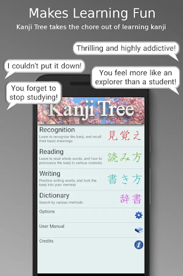 Therefore, I'm releasing this separate paid version, mainly so people can donate towards the development of Kanji Tree, if they want to.