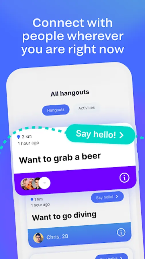 For times when you're struggling to find people to connect with or things to, our app will show you the way!