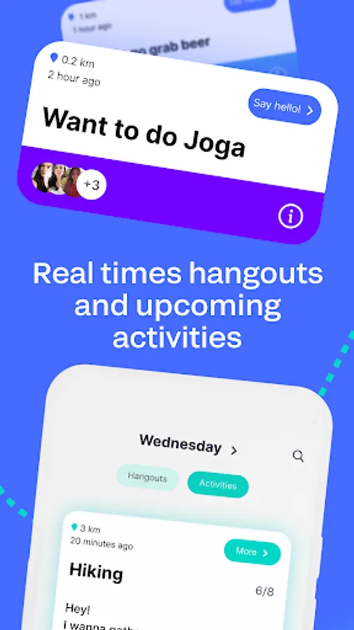Lets users create and join casual hangouts. When posting a hangout, other user can click the «join” in the post. This will notify the creator of the hangout that somebody says “hello” in the hangout. The creator can then decide if this person should be accepted or not. If accepted, the new member of the hangout will automatically be given equal rights to accept and invite other new and exciting people into the hangout.