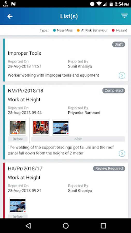 Reporting Hazard, Near-miss or At-risk behaviour is a proactive tool for definitive OHS management system. Based on Heinrich Domino's theory of reporting Hazards, investigating them and taking corrective and preventive actions, ensures a drastic reduction of incidents at any work-place. Mobile Application becomes the favourite platform for such purposes. This enables you to deploy several sets of eyes on field to start reporting unsafe acts, conditions and Hazards at the actual workplace.