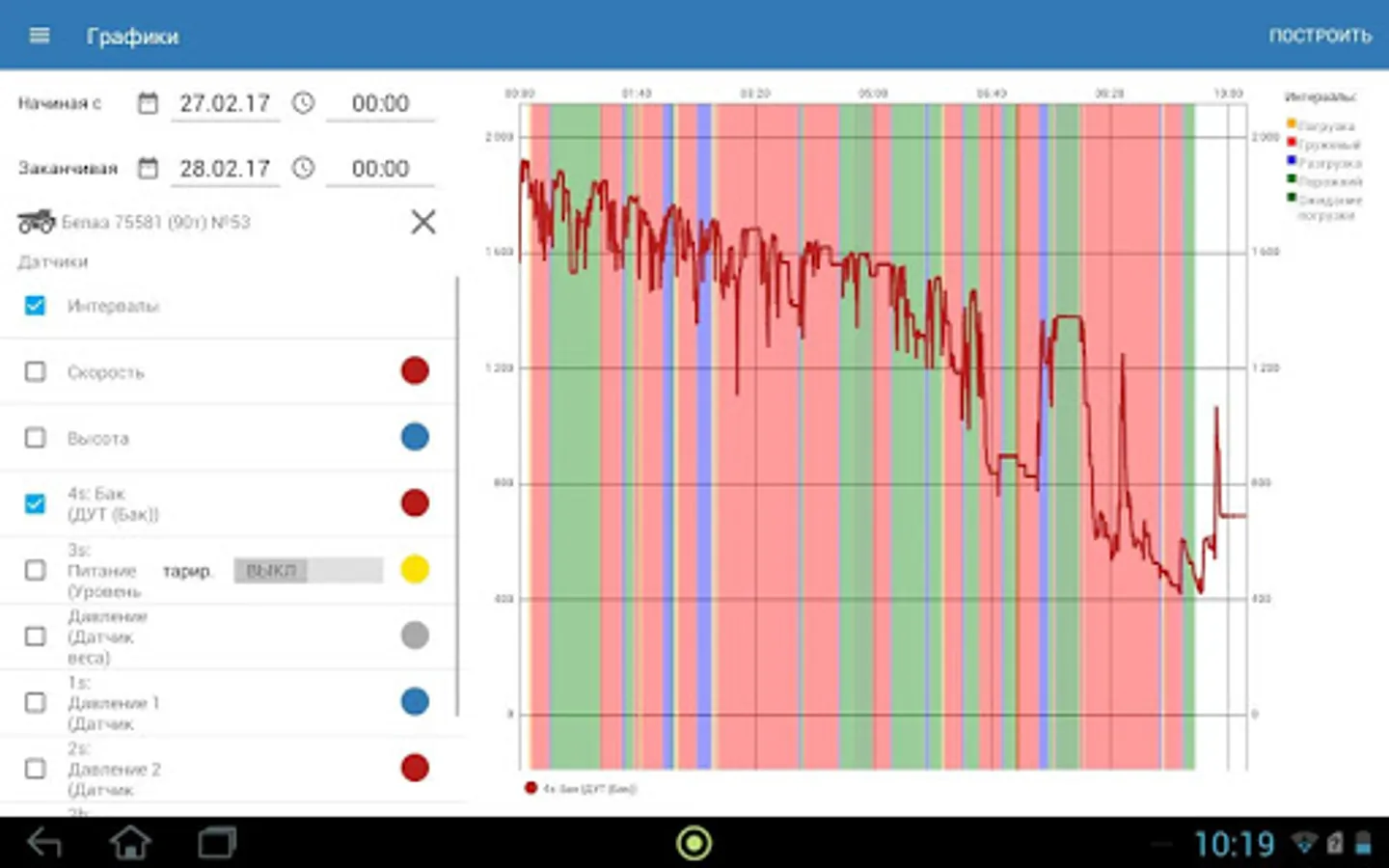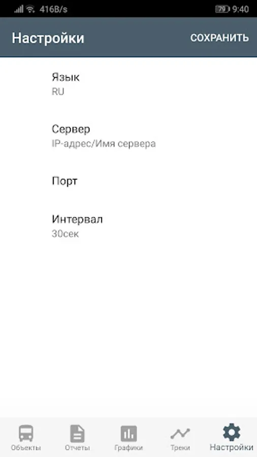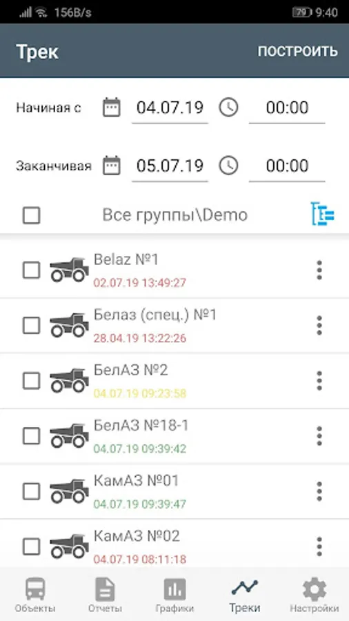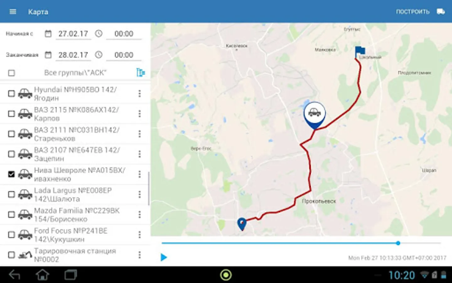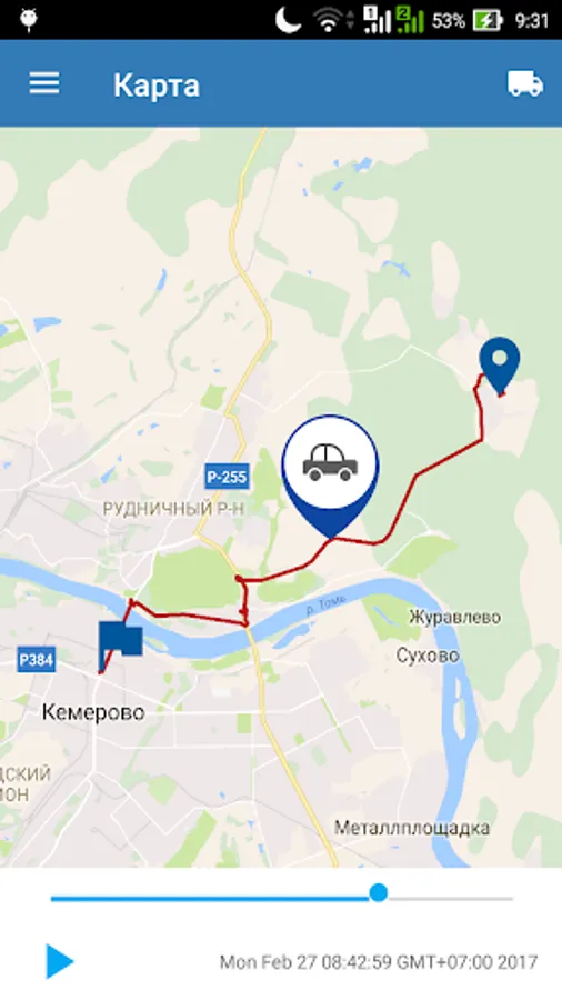 The application is available history of movement of vehicles for a period of time, there is the ability to play the track.