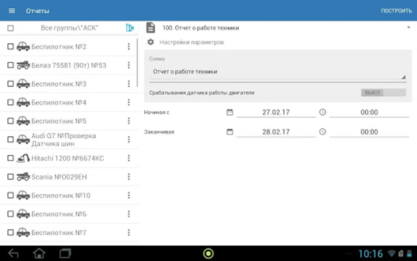Get access to reports directly from your smartphone, in them you can collect summary information about mileage and fuel, operating time of the vehicle, about completed flights, idle times and much more.