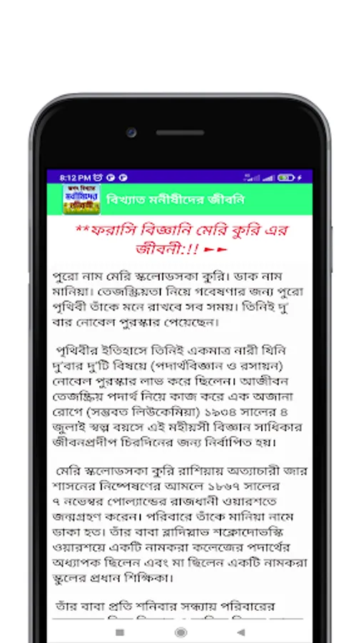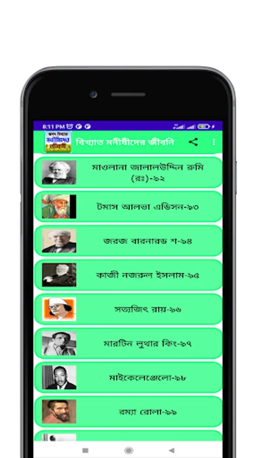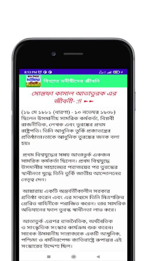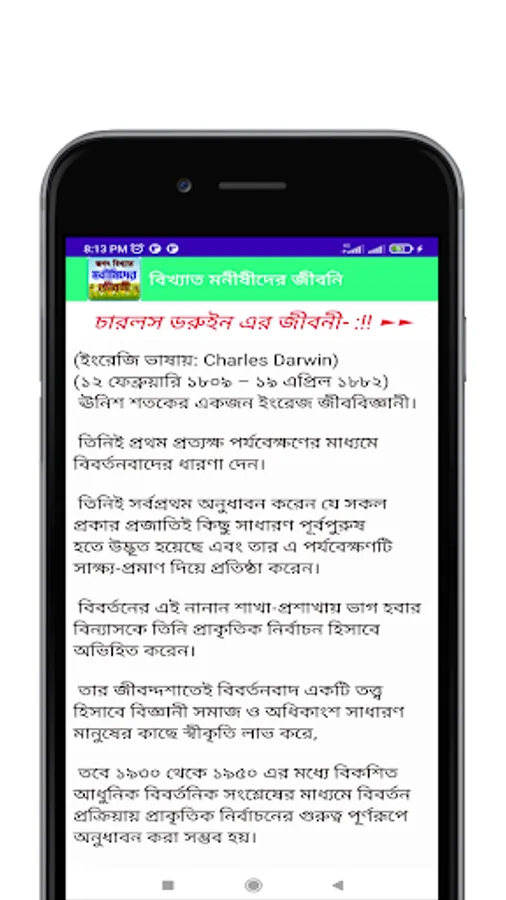 এই বিখ্যাত মনীষীদের জীবনী অ্যাপ থেকে জানতে পারবেন সর্বকালের সেরা বিখ্যাত ১০০ মনীষীর জীবনী ও ইতিহাস। পৃথিবীর ইতিহাসে বিভিন্ন মনীষীদের জীবনী বিস্তারিত পাওয়া খুবই কঠিন। মনিষীদের মধ্যে রয়েছে বিভিন্ন ধর্মানুসারী ও মুসলিম মনীষীদের জীবনী। হাজারও ব্যাক্তির মাঝে শত মনীষীর জীবনী একটি কালজয়ী বই বা অ্যাপ।
