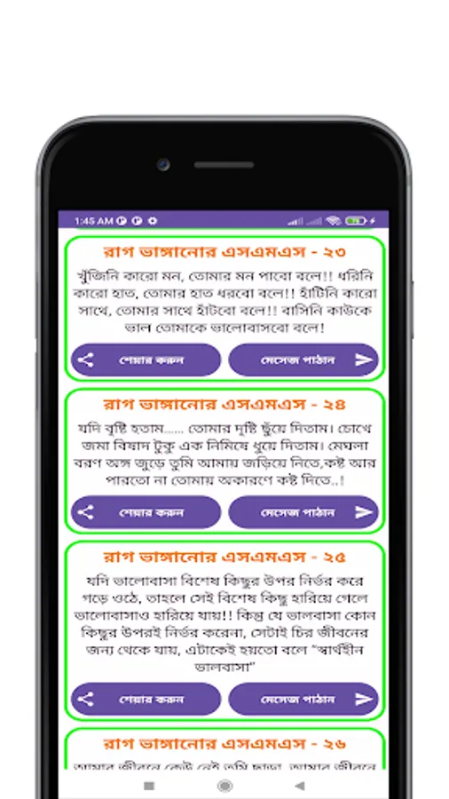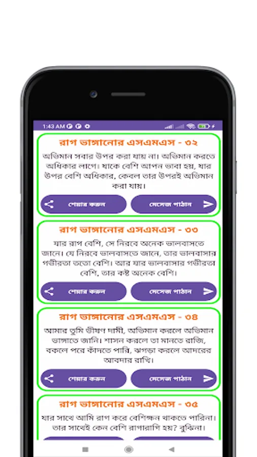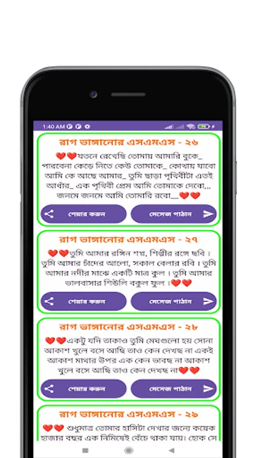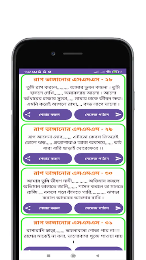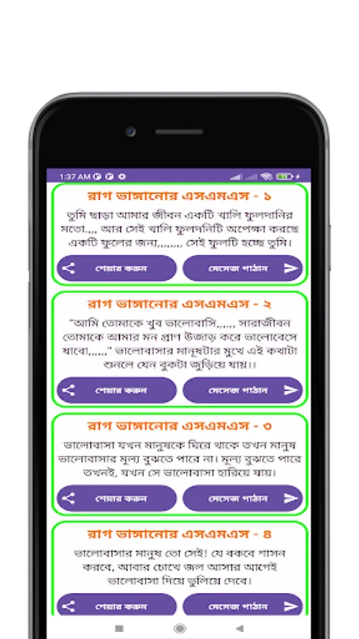 কারণ অনেক সময় এগুলো ঔষধ এর মতই কাজ করে, তাই আর দেরি না করে এখনি এই অ্যাপটি ডাউনলোড করে আপনার কাছে রেখে দিন। এবং যখন আপনার প্রিয়জন অথবা ভালোবাসার মানুষ আপনার সাথে রাগ করে থাকবে, তখন এখান থেকে আপনার পছন্দের যেকোনো একটি এসএমএস কপি করে সরাসরি তাকে পাঠিয়ে দিন।