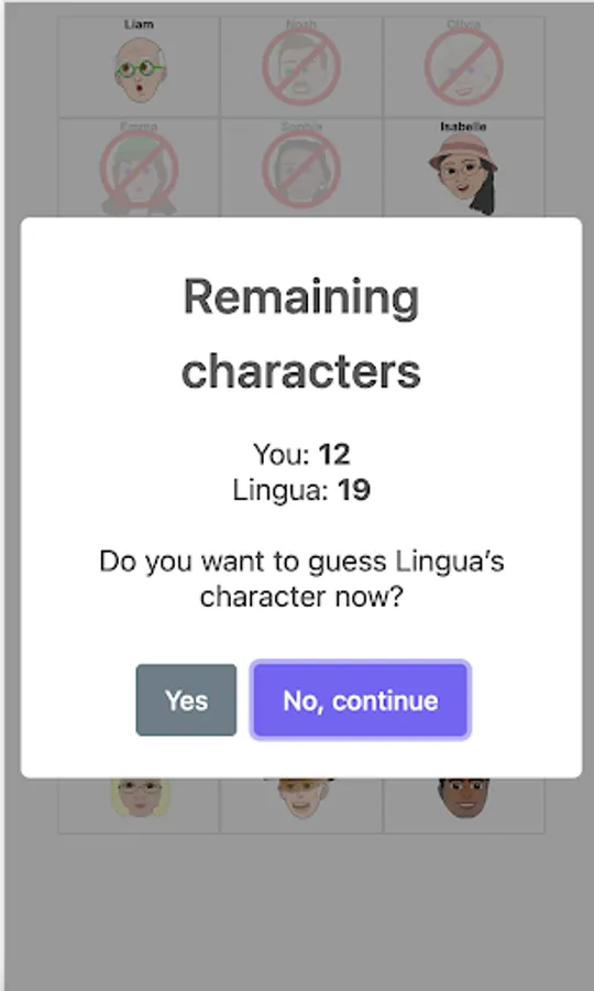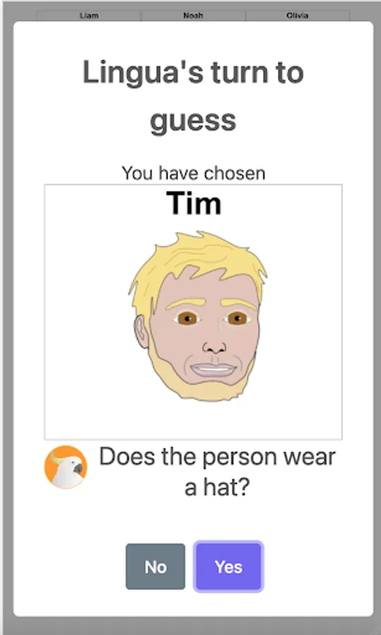 AskLingua https://www.asklingua.com is like the game "Guess Who", but for language practice and learning. Play a game against Lingua the clever cockatoo, by asking questions in the language you are learning.