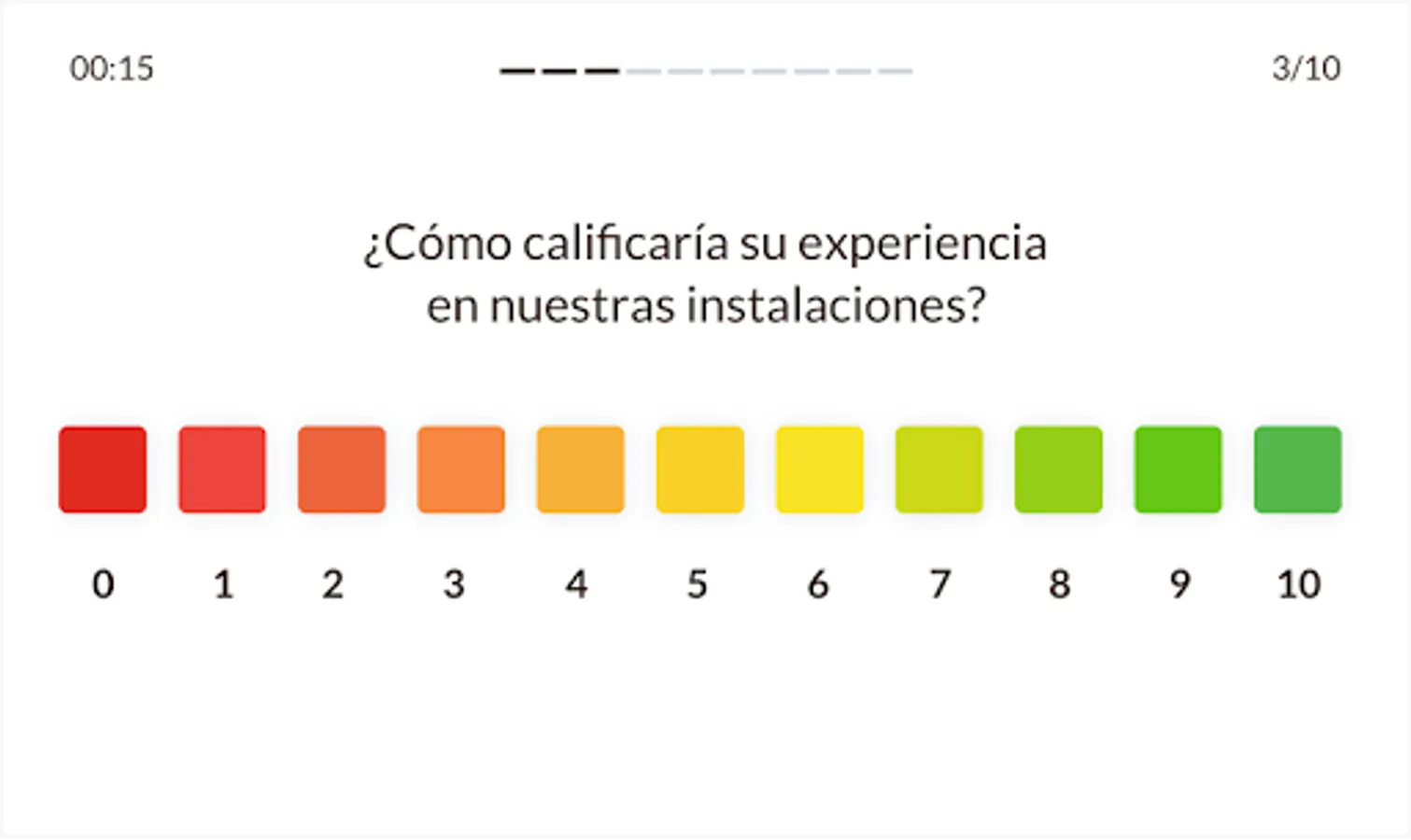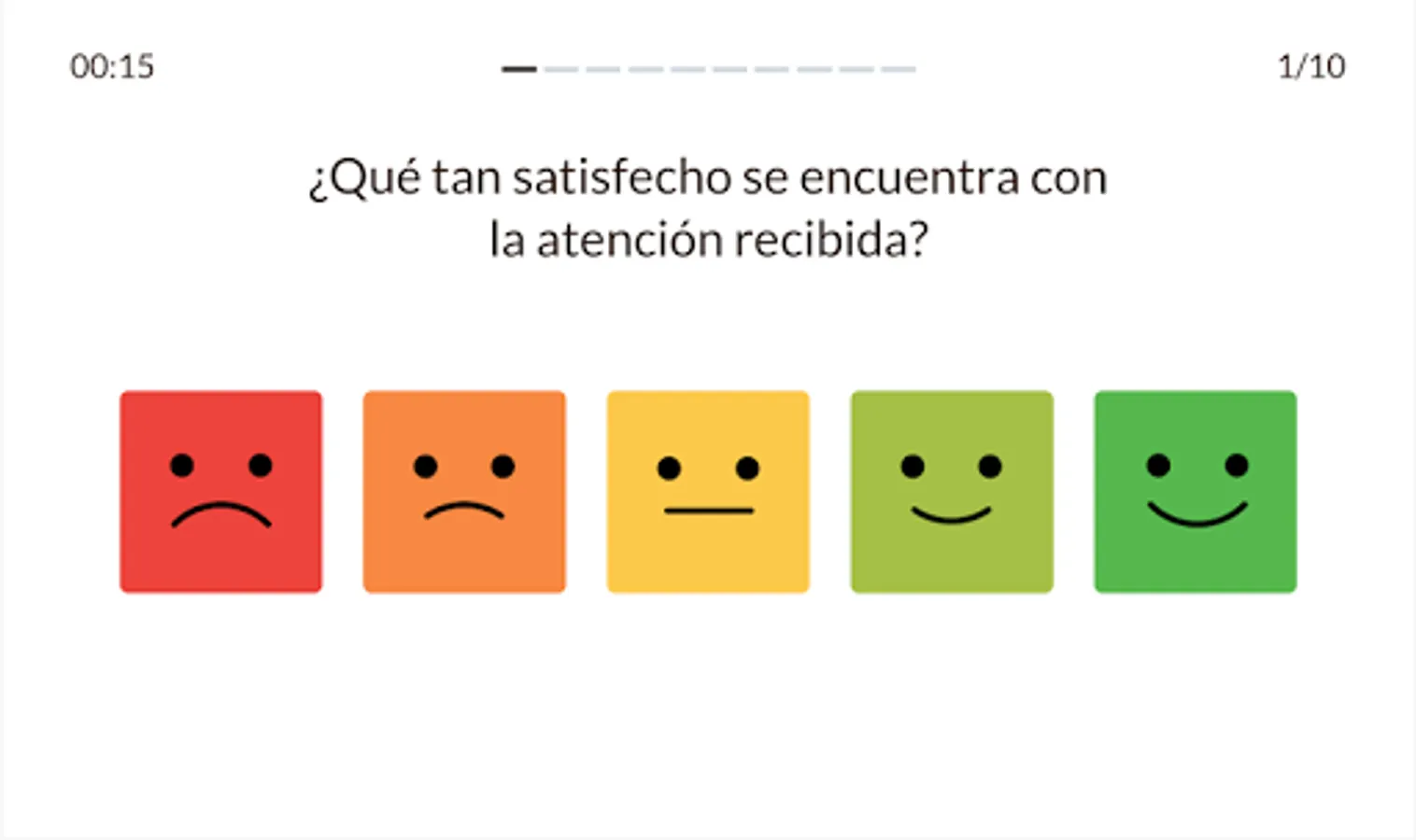 1) 3 types of questions: answers using colored faces, answers from 0 to 10 and open answers.