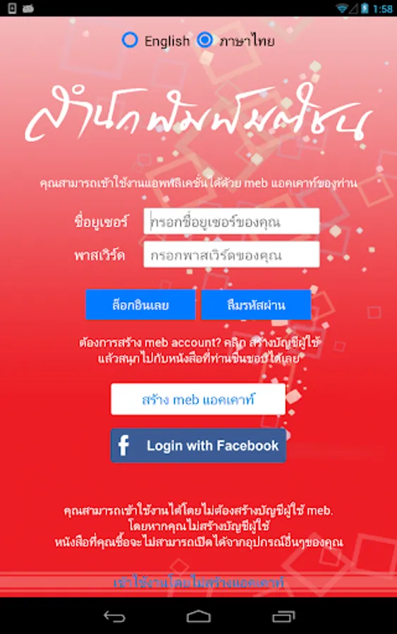 Matichon Publishing House is a sub division of Matichon Group. Since 1990, it has started publishing pocket books in three sections, namely, Thai literature, foreign translated, and Art & Culture. At present, Matichon Publishing House publishes pocket books for over 20 categories, including Thai fiction, translated fiction, juvenile fiction, academic, business, economics, history, science, environment, biography, politics, art and culture, non-fiction, travel,. psychology, health, career, religion, astrology and miscellaneous. All of which are done under the slogan "Expand your life with Books.".