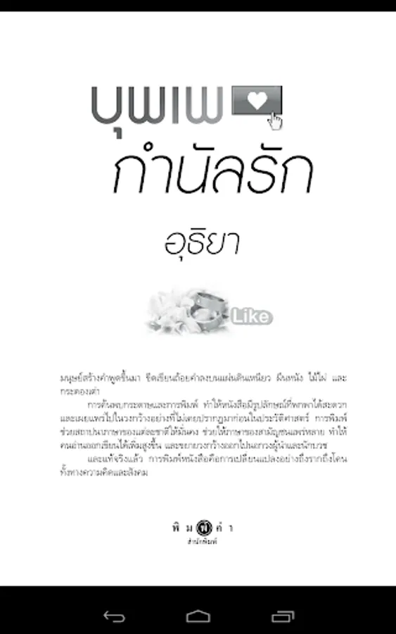 Sataporn e-Book The new innovation of reading was created in response to the lifestyle of the changed people in the present day. We turn the books you used to know into modern electronic books with a focus on convenience and getting people closer to your favorite books wherever and whenever they need them.