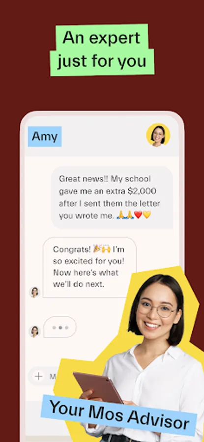 From FAFSA to filing appeals, you can do the financial aid stuff on your own. Want an expert to take over? That’s cool too--and where Mos financial aid advisors come in. Get unlimited access to an advisor who’ll review your annual aid offer, draft custom tuition negotiation letters, and more.*