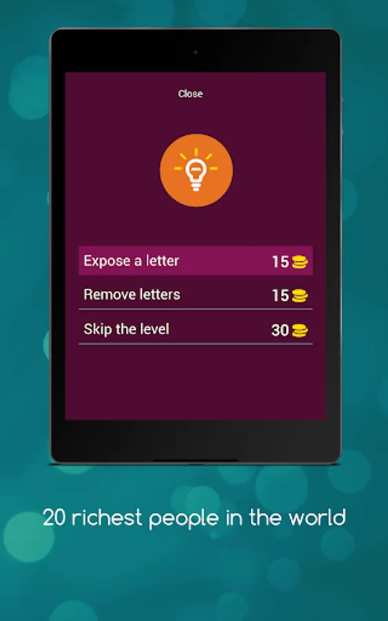 The Quiz game for the 20 richest people in the world is a trivia game that tests players' knowledge of the wealthiest individuals on the planet. The game typically presents players with a series of questions related to the net worth, business ventures, and personal lives of the world's top billionaires.