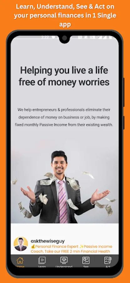 AskTheWiseGuy App is a central place for personal finance mastery. The mobile app covers different dimensions of how we manage and experience personal finance in our lives, here they are: