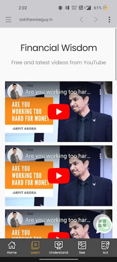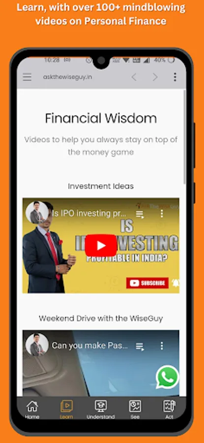 Learn: Through free YouTube videos, the app intends to impart financial wisdom to people who are interested in making a change in national life.