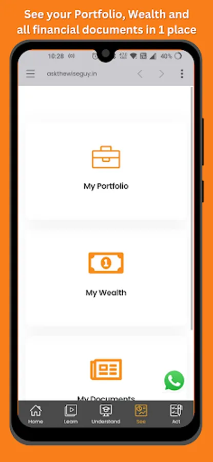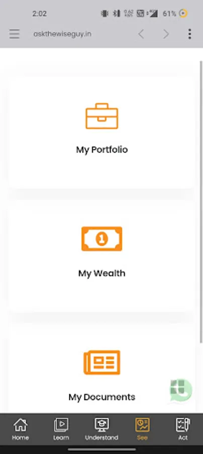See: This unique section allows the user to monitor the performance of their portfolio, map and the entire wealth of individual lives on the app. They can also get access to personal documents which were collated on a secured Google Drive folder which are sequentially stored.