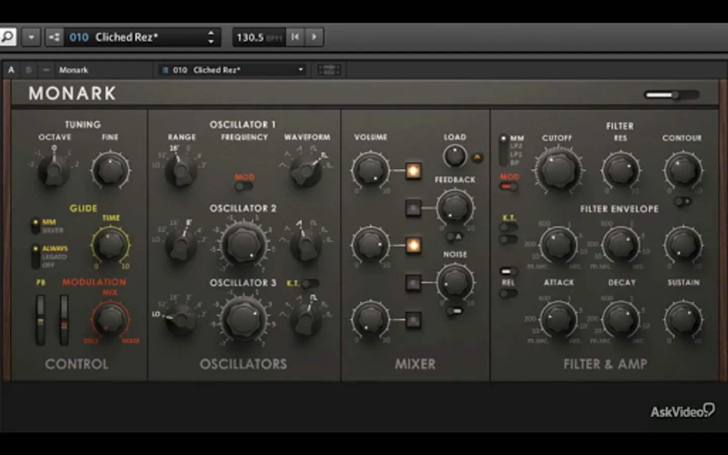 You learn about Monark's oscillators, modulators, filters and amplifiers and how they all work together in typical analog fashion to produce that classic sound. You also get an explanation of Monark's seriously cool back panel where the true analog magic happens. Here is where the Native Instrument design team has gone the extra distance. The back panel lets you add ultimate realism to your sound design by controlling the classic analog drift, tracking and distortion. WOW!