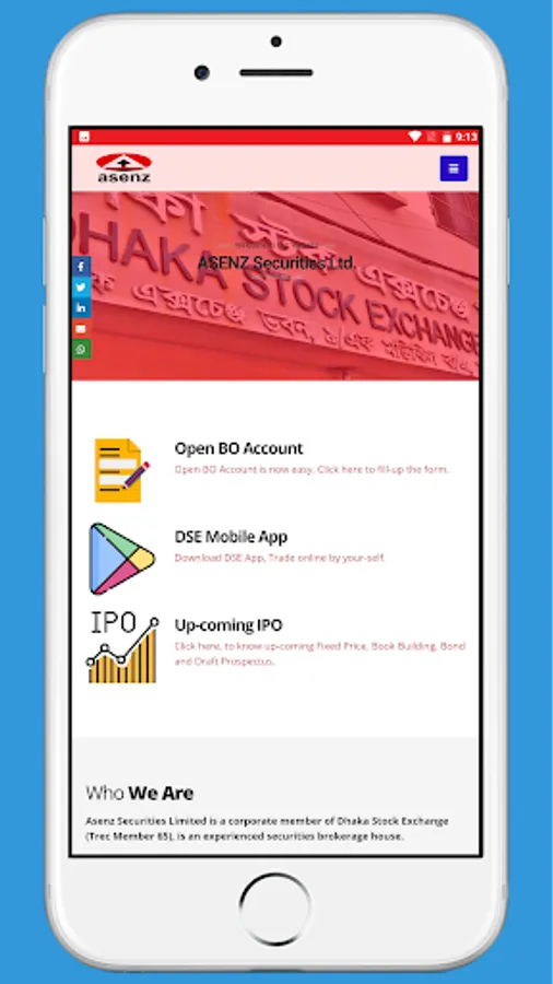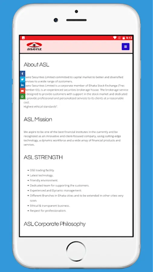 ASENZ Securities Ltd. DSE Trec No. 065, this is ASL web app, technology is growing so fast. So for that, ASL wants to take advantages of powerful virtual platform to connect their clients in fingertips. The main features of this app is: