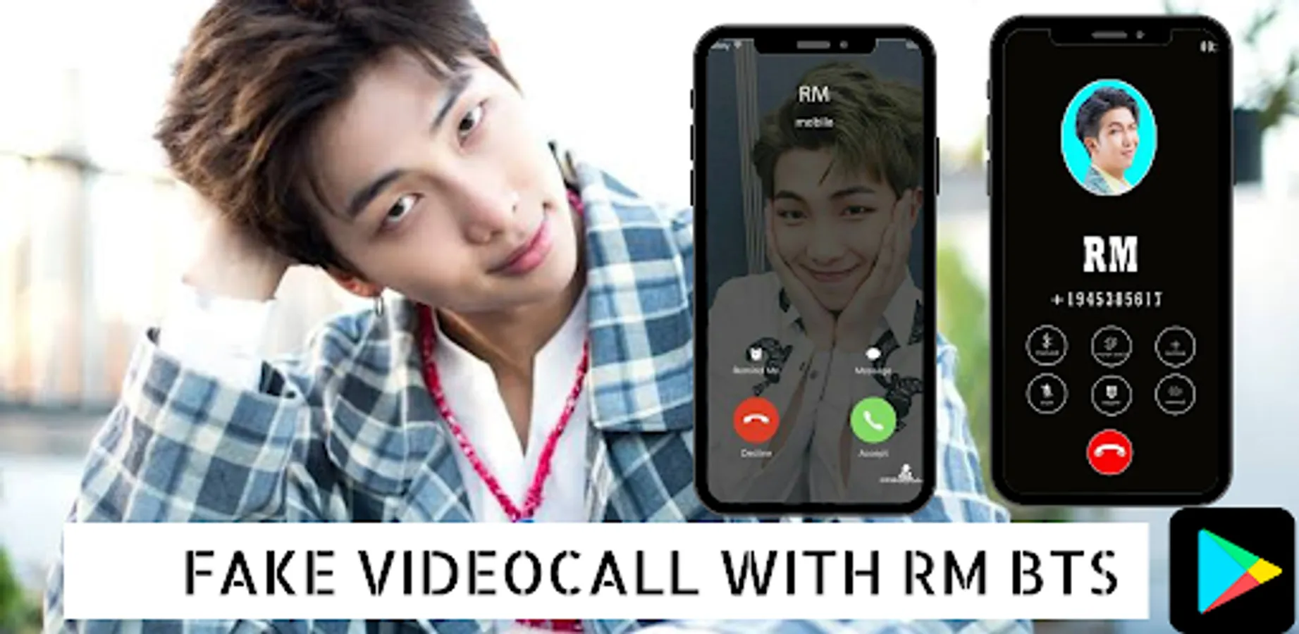Download the APP Immediately VIDEOCALL BTS RM FAKECALL and show your friends that you are calling BTS Member Kim Nam-Joon.