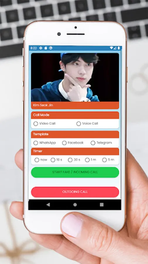 BTS Jin call you : Fake call and video call application to accompany your days in your free time when you feel lonelyand boring then entertain yourself with fake calls from your idol. this application to simulation a fake chat messenger with a fake call and video call, we add option to start live with your BTS Jin, to look a real chat messenger live. all this just for prank your friends or your family to make a fake chat with favorite stars BTS Jin to be a real chat, you have three option to connect with BTS Jin Call BTS Jin calling voice, BTS Jin live chat or BTS Jin calling video, Download BTS Jin fake video call and enjoy with friends