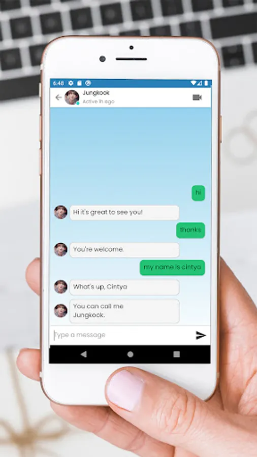 BTS Jungkook fake video call is a simple application is very professional application to make call video with your hero BTS Jungkook chat call and fake video call with a simple live chat, Enjoy calling BTS Jungkook chat in an easy way, feel free and download this BTS Jungkook video call for have fun with friend. BTS Jungkook video Call, Today you can prank your friends and joke with them, Connect to BTS Jungkook fake chat by clicking on the fake chat button and have fun with BTS Jungkook call with your friends.