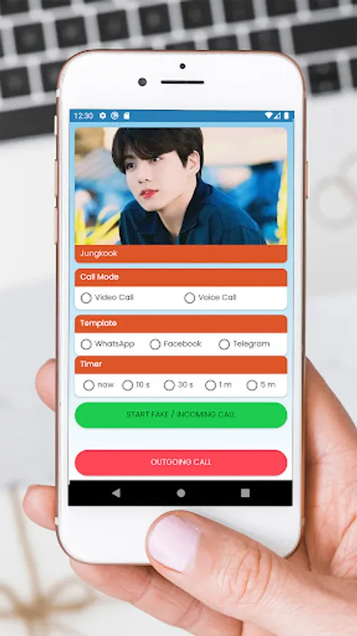 BTS Jungkook call you : Fake call and video call application to accompany your days in your free time when you feel lonelyand boring then entertain yourself with fake calls from your idol. this application to simulation a fake chat messenger with a fake call and video call, we add option to start live with your BTS Jungkook, to look a real chat messenger live. all this just for prank your friends or your family to make a fake chat with favorite stars BTS Jungkook to be a real chat, you have three option to connect with BTS Jungkook Call BTS Jungkook calling voice, BTS Jungkook live chat or BTS Jungkook calling video, Download BTS Jungkook fake video call and enjoy with friends