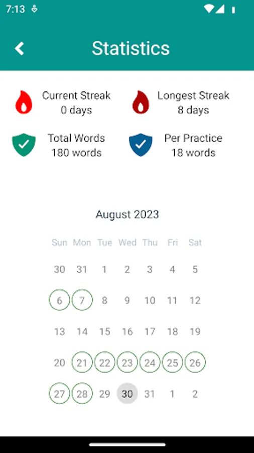 - The Statistics page helps you keep track of your streaks, word counts, and more.