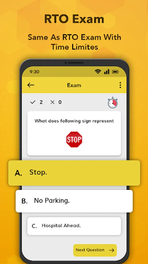 Exactly same as RTO test, random questions and road signs related questions will be asked in this exam. Time limit for each question is exactly same as approved by state RTO Department.