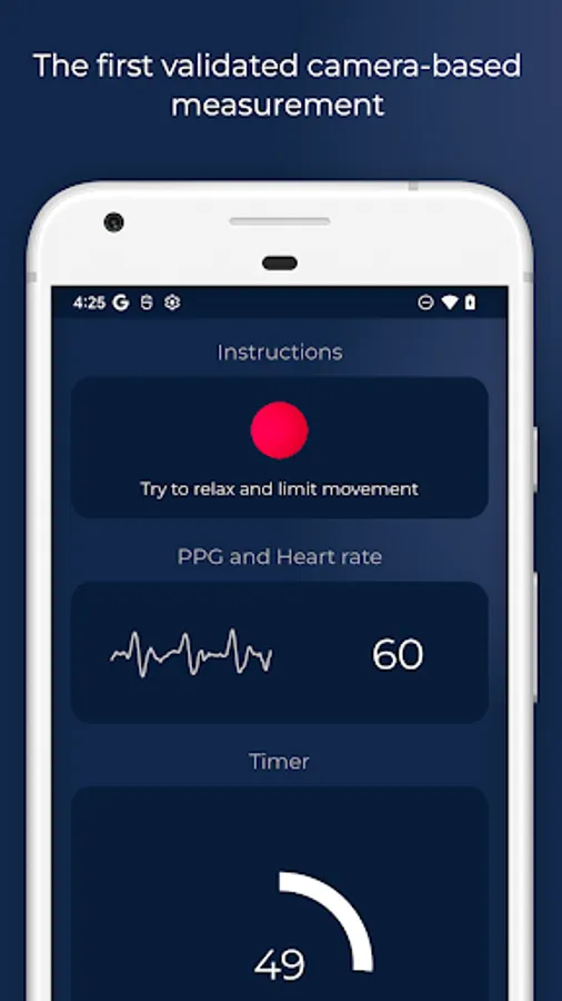- Shows the PPG signal view to ensure signal quality during the test if the camera is used instead of a sensor