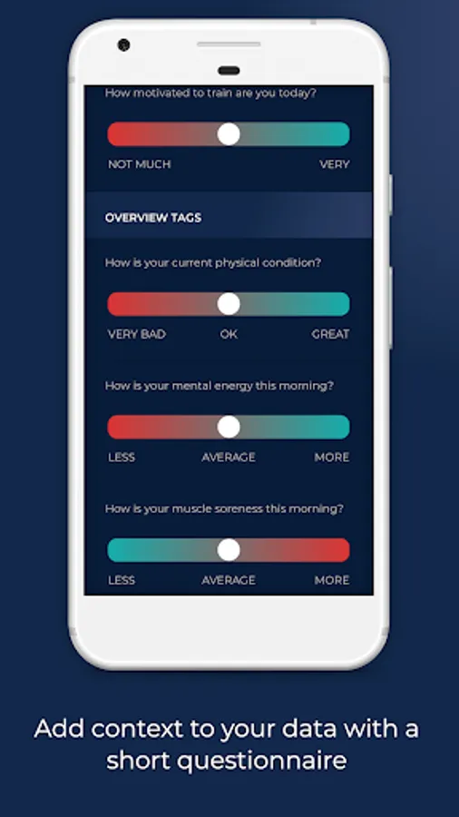 - TAGS: lets you tag your sleep, mental energy, muscle fatigue, stress and all other parameters that can help you understand what is influencing your physical condition and physiological stress