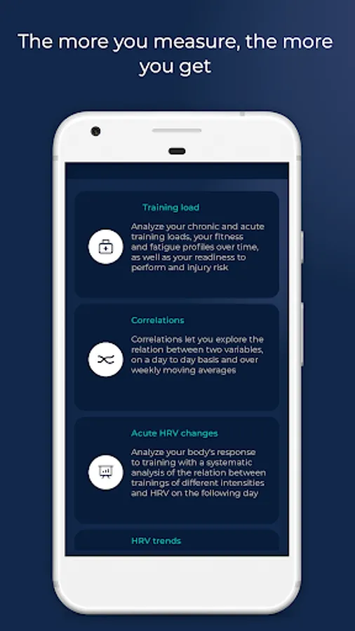 The only scientifically validated HRV app that doesn't require an external sensor. HRV4Training helps you optimize your goals by providing tailored feedback on your physical condition