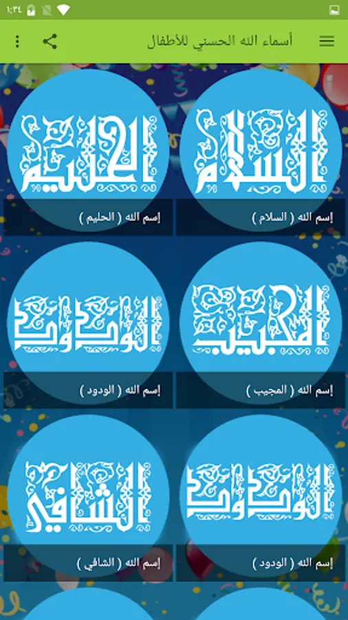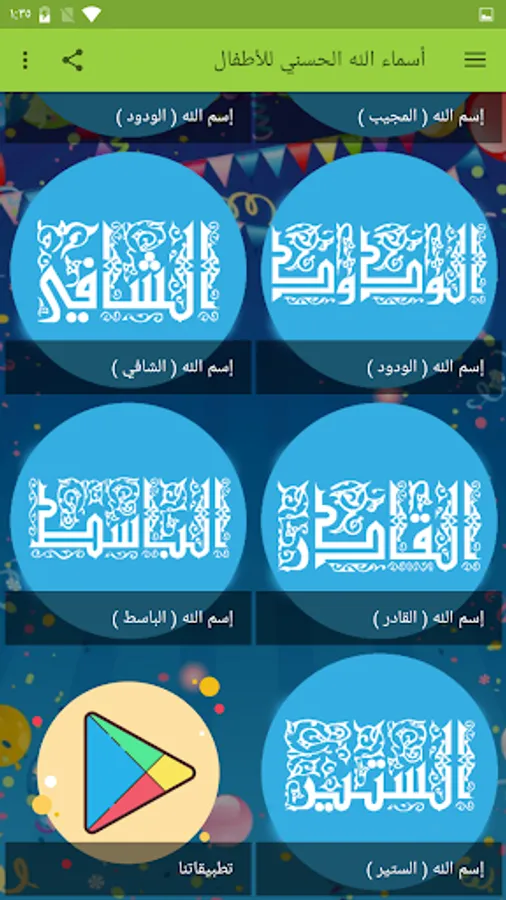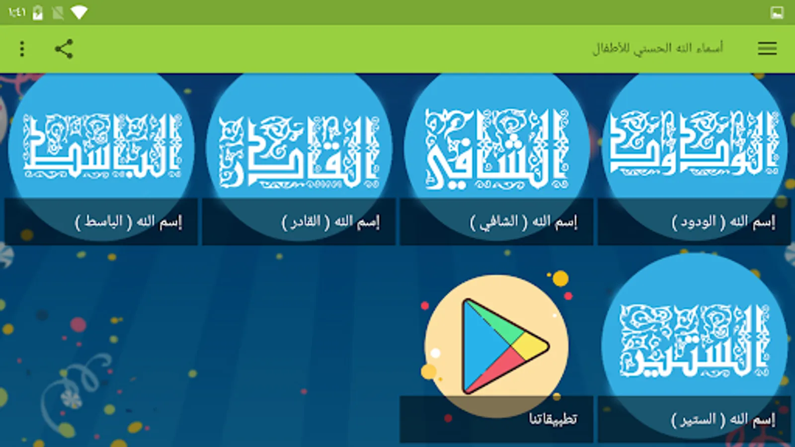 Through the application, we will help you to explain to your children some of the Most Beautiful Names of God, which are as follows: