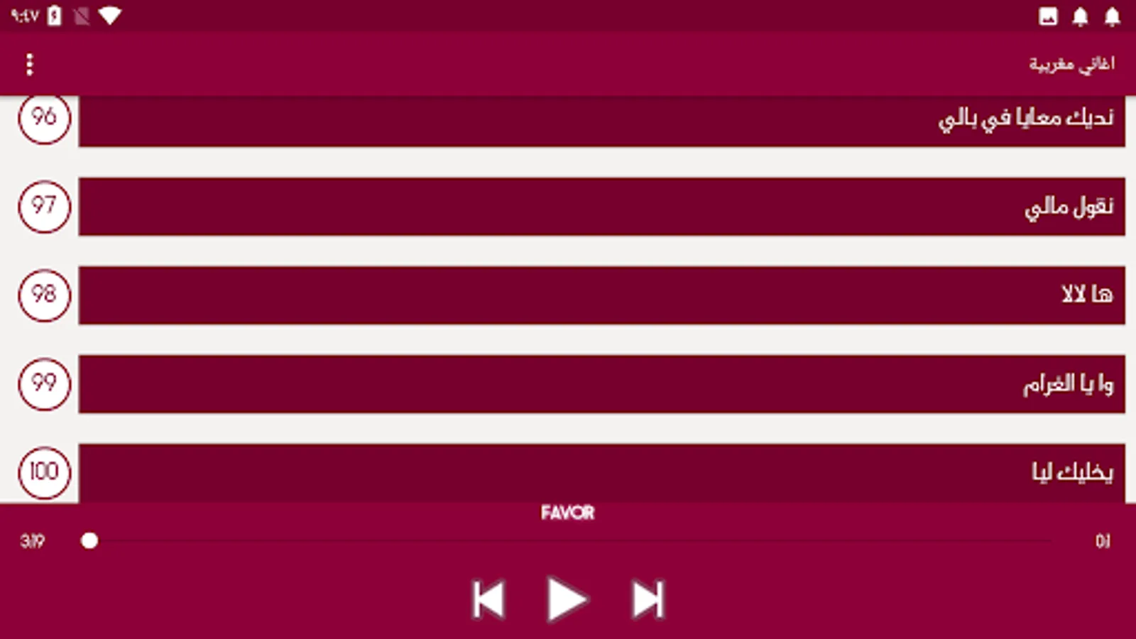 This application includes all Moroccan songs without the Internet, as the application contains more than 100 Moroccan songs without the Internet.