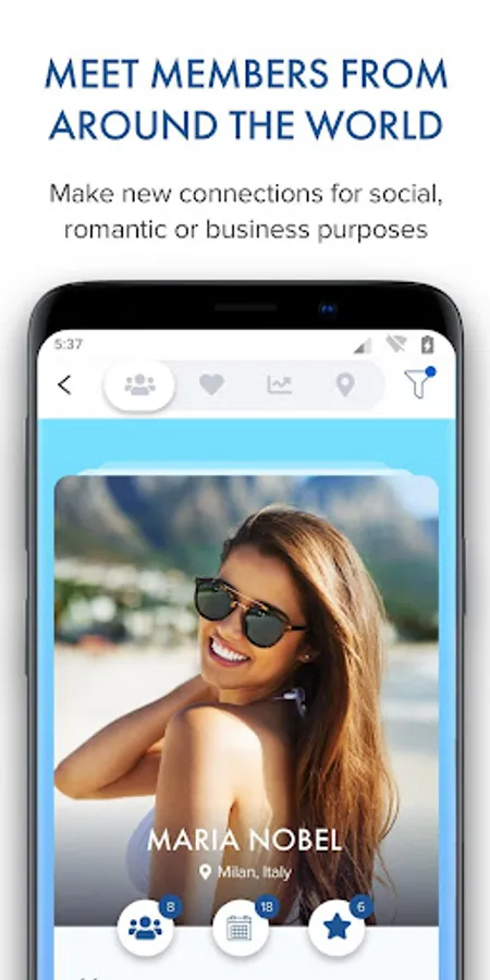 Connect with other members while travelling, or at home, to make new friends, find love, or strengthen your business network.