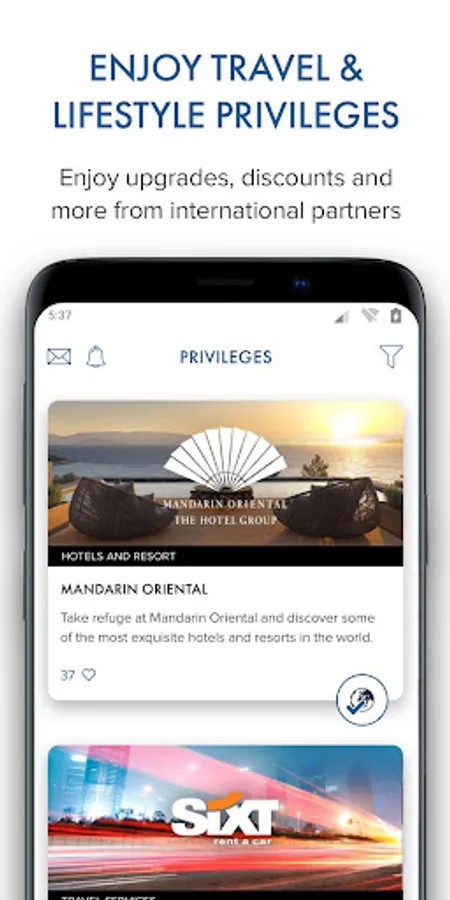 Enjoy exclusive travel & lifestyle privileges from international partners, like status upgrades, discounts and perks from hotels, car rental companies or renown travel and lifestyle brands.