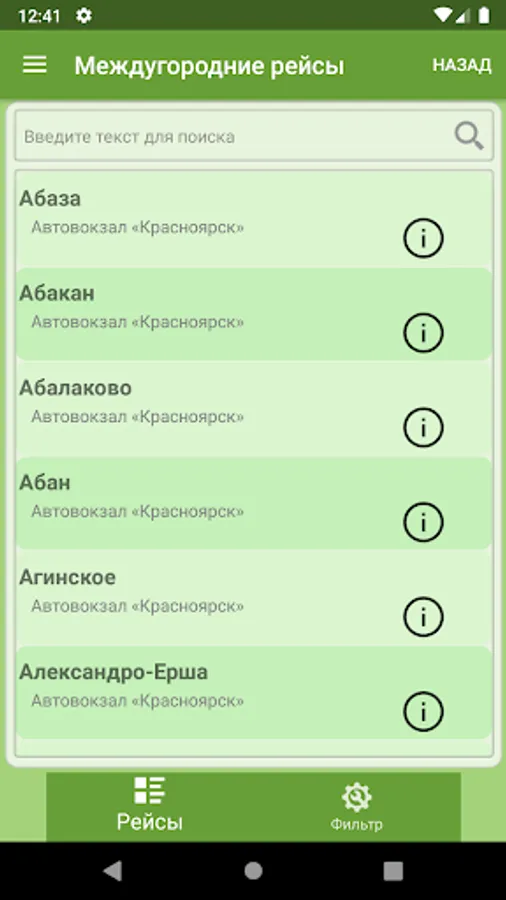 Krasnoyarsk intercity bus schedule without maps and offline.