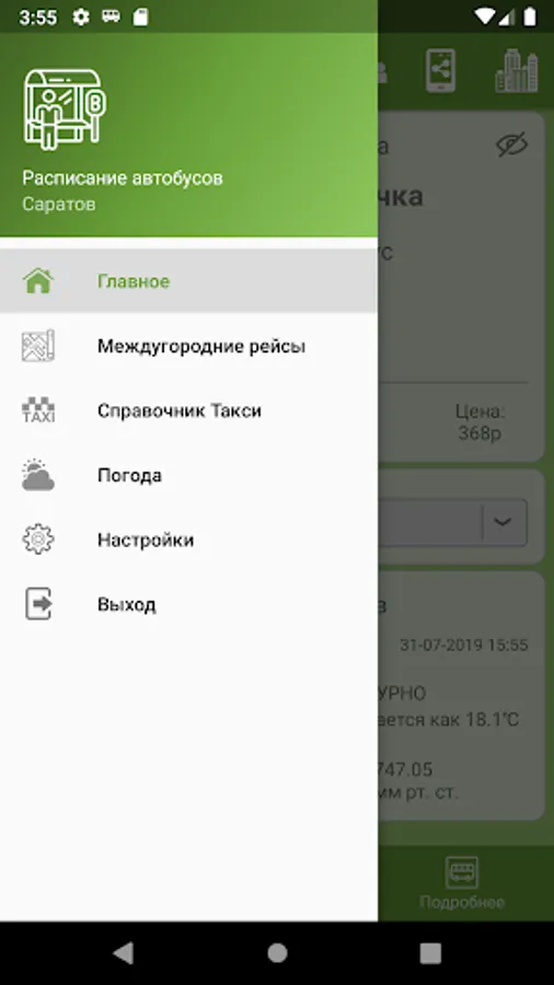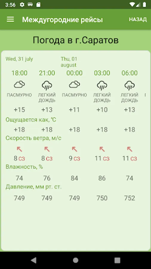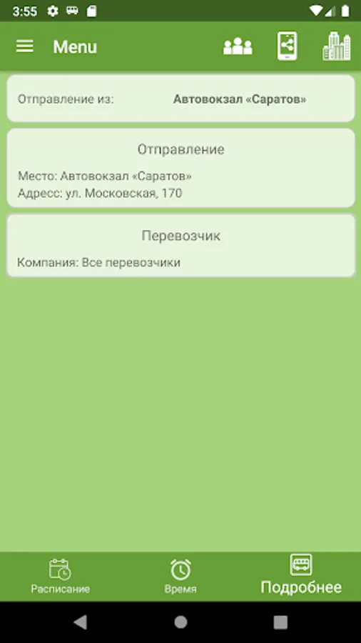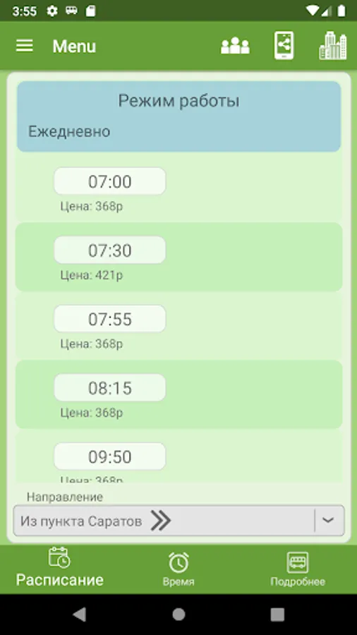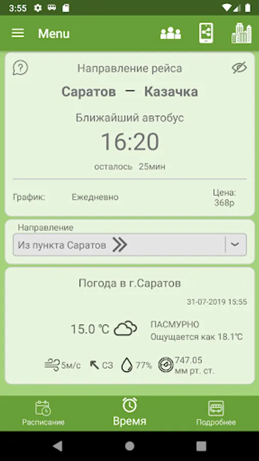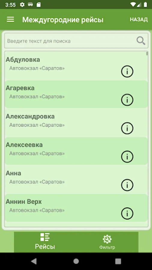 Schedule of suburban buses without maps and offline for the city of Saratov.