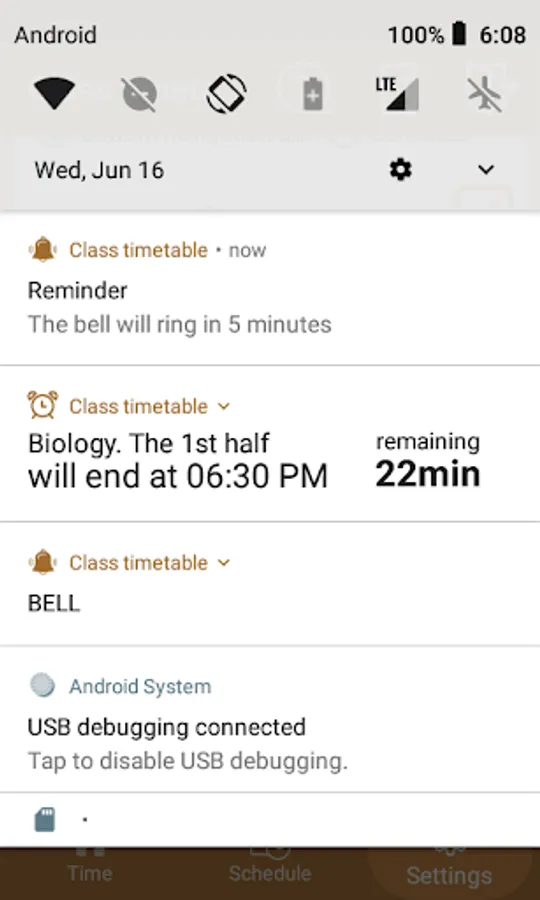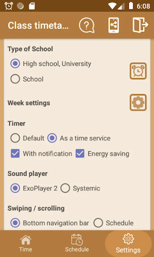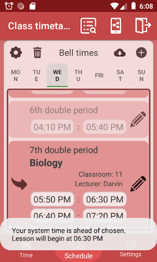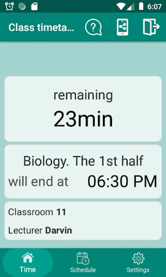 Easy to set up app that allows you to know when the lesson starts or when will it end in time.