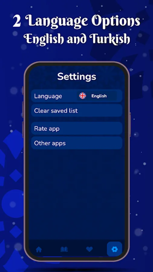 In the settings screen, you can change the language option and clear the saved names. Thanks to our user-friendly interface, you can easily use our application and better understand Allah's names.