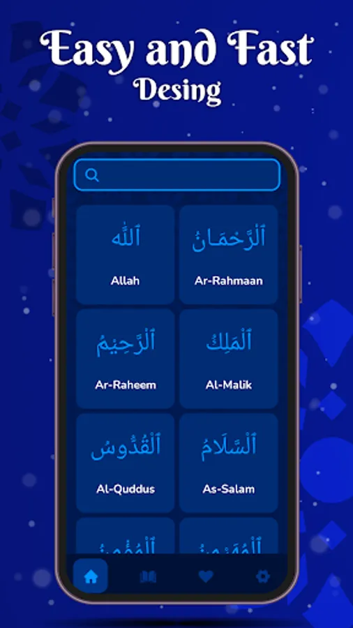 Our mobile application Asmaul Husna 99 Names of Allah is a comprehensive tool designed for those who want to learn Allah's 99 names in detail. On our homepage, Allah's 99 names are listed, and you can easily find the name you want through the search function.